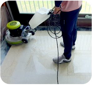석재 바닥을 관리하기 위한 가장 이상적이고 안정적인 방법은 연마와 광택에 의한 관리입니다. 석재의 흠집이나 오염 상태에 따라 석재전문장비 아킬라와 단계별 세라믹 다이아몬드 패드를 사용하여 석재 표면을 갈아내는 방식으로 석재의 마모,스크래치,오염 등을 제거하고 본래의 아름다움을 복원합니다.